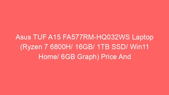 Buying new laptop can be a hard decision. There are so many brands and models that it can be overwhelming. Here you can find the specs and price of Asus TUF A15 FA577RM-HQ032WS Laptop (Ryzen 7 6800H/ 16GB/ 1TB SSD/ Win11 Home/ 6GB Graph).