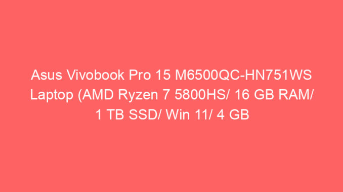 - Model: Asus Vivobook Pro 15 M6500QC-HN751WS Laptop (AMD Ryzen 7 5800HS/ 16 GB RAM/ 1 TB SSD/ Win 11/ 4 GB Graphics)
