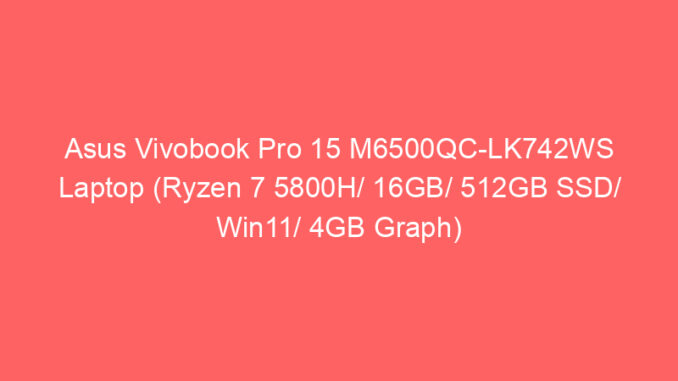 Buying new laptop can be a hard decision. There are so many brands and models that it can be overwhelming. Here you can find the specs and price of Asus Vivobook Pro 15 M6500QC-LK742WS Laptop (Ryzen 7 5800H/ 16GB/ 512GB SSD/ Win11/ 4GB Graph).