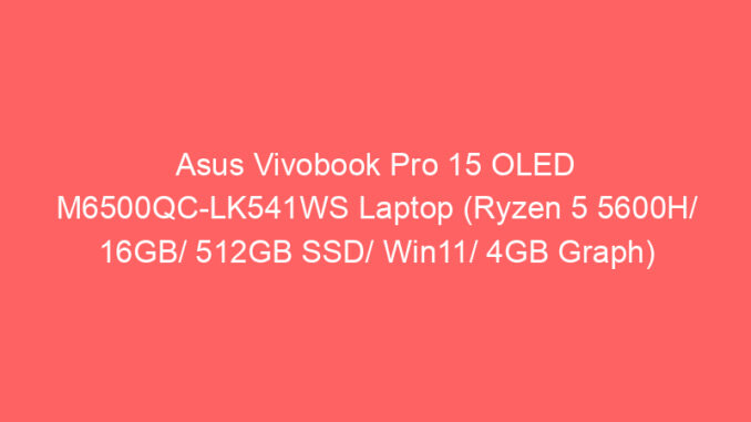 - Model: Asus Vivobook Pro 15 OLED M6500QC-LK541WS Laptop (Ryzen 5 5600H/ 16GB/ 512GB SSD/ Win11/ 4GB Graph)