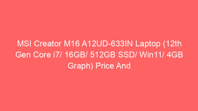 Buying new laptop can be a hard decision. There are so many brands and models that it can be overwhelming. Here you can find the specs and price of  MSI Creator M16 A12UD-633IN Laptop (12th Gen Core i7/ 16GB/ 512GB SSD/ Win11/ 4GB Graph).