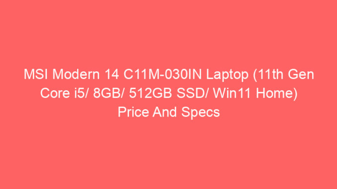 Buying new laptop can be a hard decision. There are so many brands and models that it can be overwhelming. Here you can find the specs and price of MSI Modern 14 C11M-030IN Laptop (11th Gen Core i5/ 8GB/ 512GB SSD/ Win11 Home).