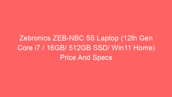 Zebronics ZEB-NBC 5S Laptop (12th Gen Core i7 / 16GB/ 512GB SSD/ Win11 Home) Price And Specs